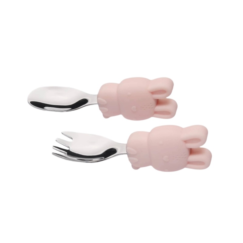 When your baby starts using his or her utensils, theres always a steep learning curve (read: a big mess). The Loulou Lollipop toddler learning spoon and fork set is perfectly sized for little hands to encourage self-feeding with chunky easy-grab handles. Made of buttery smooth premium food-safe silicone and SS304 stainless steel, this set is available in exclusive animal characters.