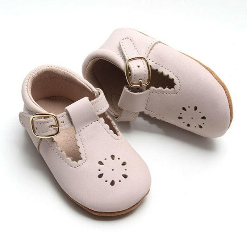 Leather Petal T-Bar | Color ‘Dusty Pink’ | Soft Sole 2 (3 – 6 months)