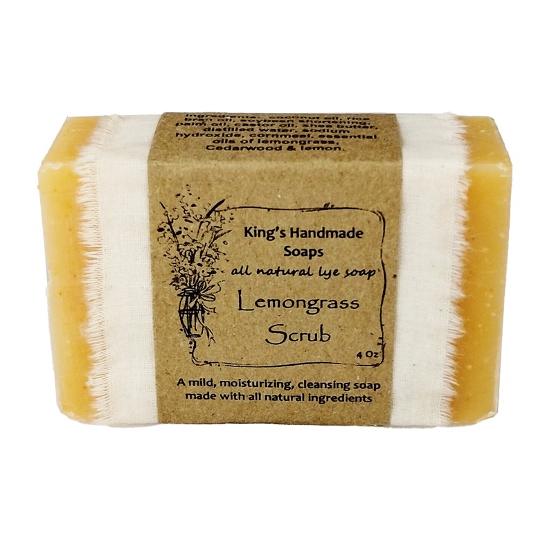 Cleanse your skin with this all-natural Lemongrass Scrub bar of soap! This exfoliating soap is made with cornmeal which is great for scrubbing your hands after gardening or working on the car. Plus, the lemongrass is known to be an insect repellent!4 oz. h