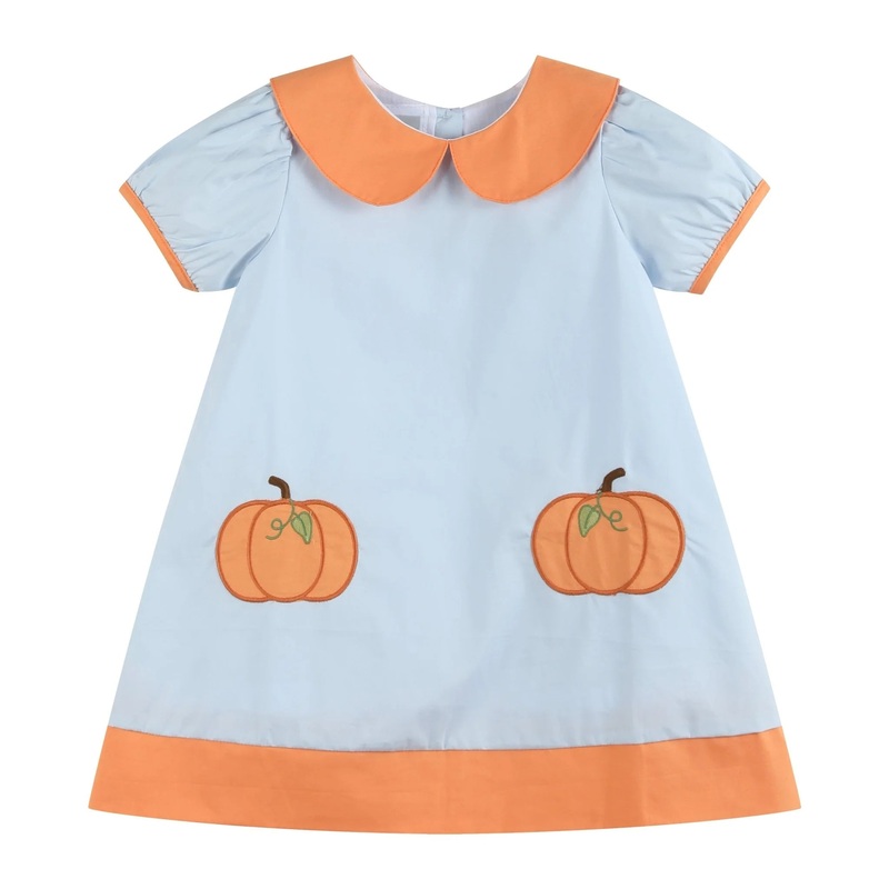 Z77983094269Light Blue Pumpkin Applique Collared Dress