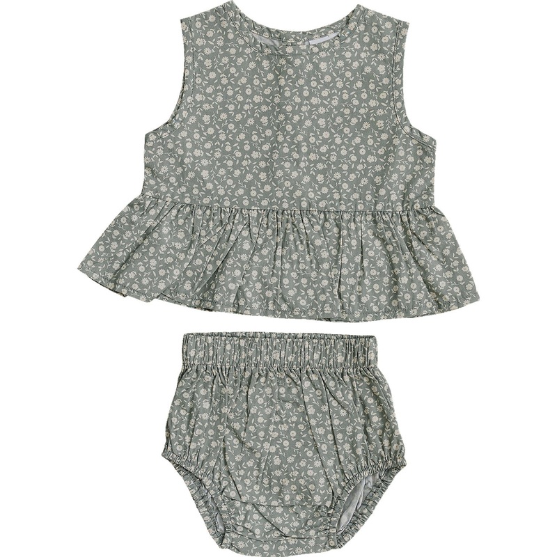 We fell in love with this beautiful neutral set.It the perfect out fit to keep your little one cool on a hot day, while dressed up. It come with bloomers that have an elastic waist.Wash in cold waterFits True to Size100% CottonMeasurement in inches:Top:Len