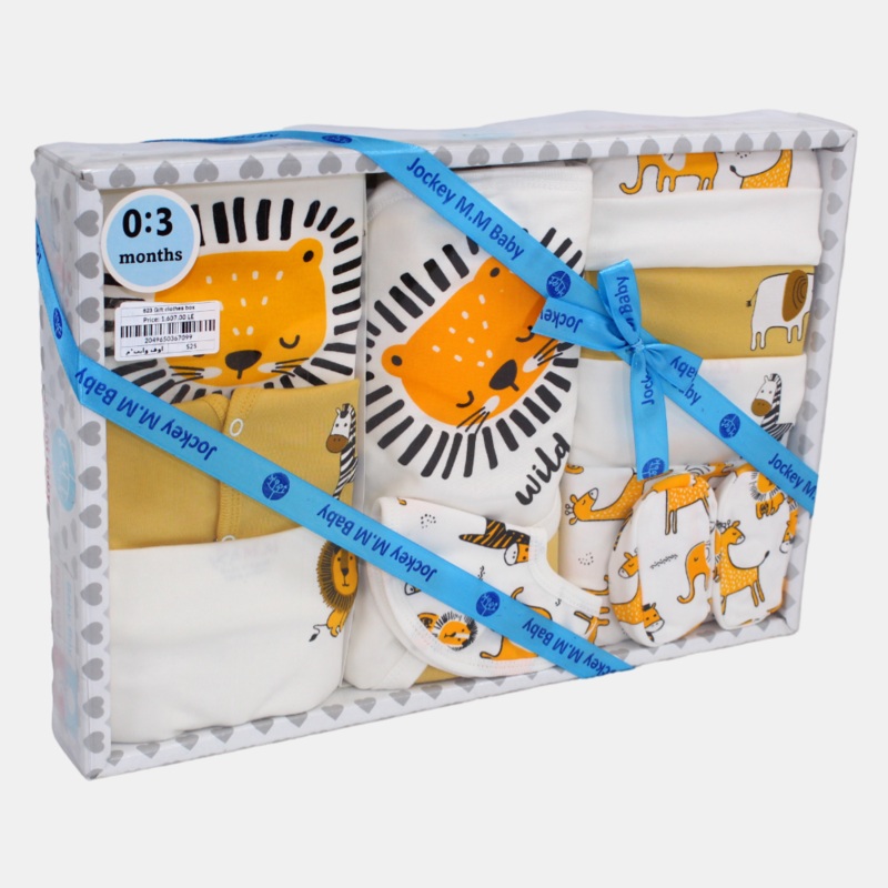 Lion Themed Baby Boys’ Cotton Gift Box – 10 Pcs (0-3m)