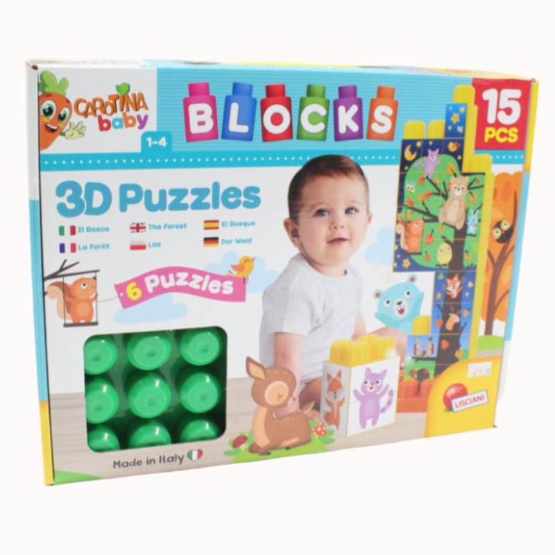 Carotina construction blocks for the youngest.The set consists of 15 bricks with stickers that allow you to put together colorful illustrations.In addition to creative play and manual skills training, the child also practices matching, trying to compose a