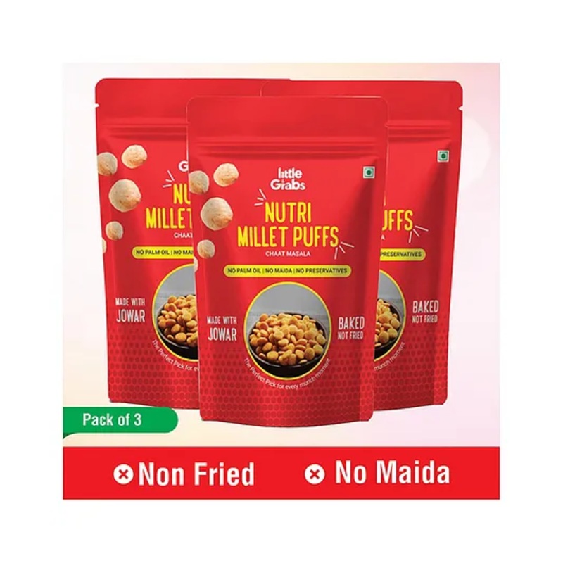 Little Grabs Nutri Millet Puffs are baked, notfried, ensuring a guilt-free and nutritious snacking experience.
