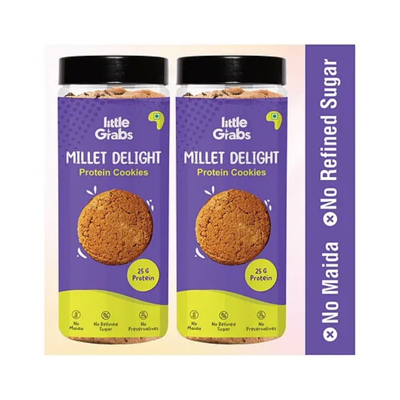 Discover the power of Little Grabs protein cookies! Packedwith 25 grams of proteinequivalent to 4 eggsthese tasty treats are not onlydelicious but also a great source of essential vitamins and minerals. Withtheir high fiber content, they’re perfect for keeping hunger at bay, makingthem an ideal snack for kids in school, adults on the go, or even grandparentslooking for a nutritious bite. Enjoy the peace of mind that comes from ajunk-free snack that’s travel-friendly and lasts up to six months. Treatyourself and your family to a smart snacking choice everyone can enjoy!
