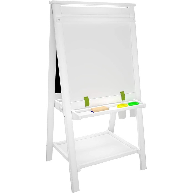 Encourage your child to explore their inner artist with the Little Partners Little Artist EZ Easel. The possibilities for creative play are endless with a chalkboard, whiteboard, and paper roll for drawing or painting their next masterpiece. Two paint cups