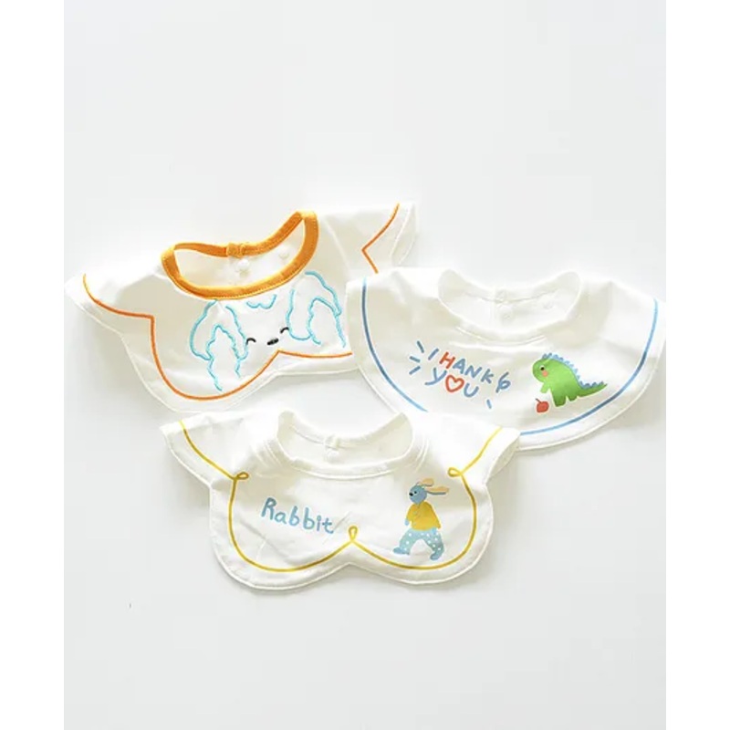 Little Surprise Box Premium Bib with adjustable snap button Closure Wide Shoulder Dino Print Pack Of 3 – White