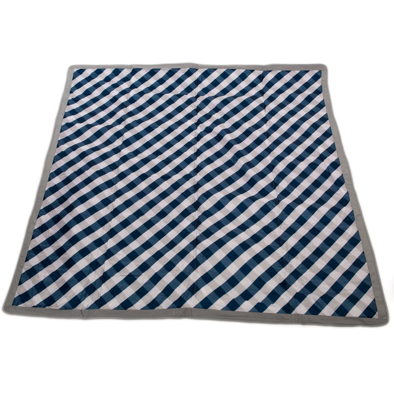 Easy fold structure with convenient carrying handle Ideal for outdoor activities Water resistant Wipeable material 5' x 5'