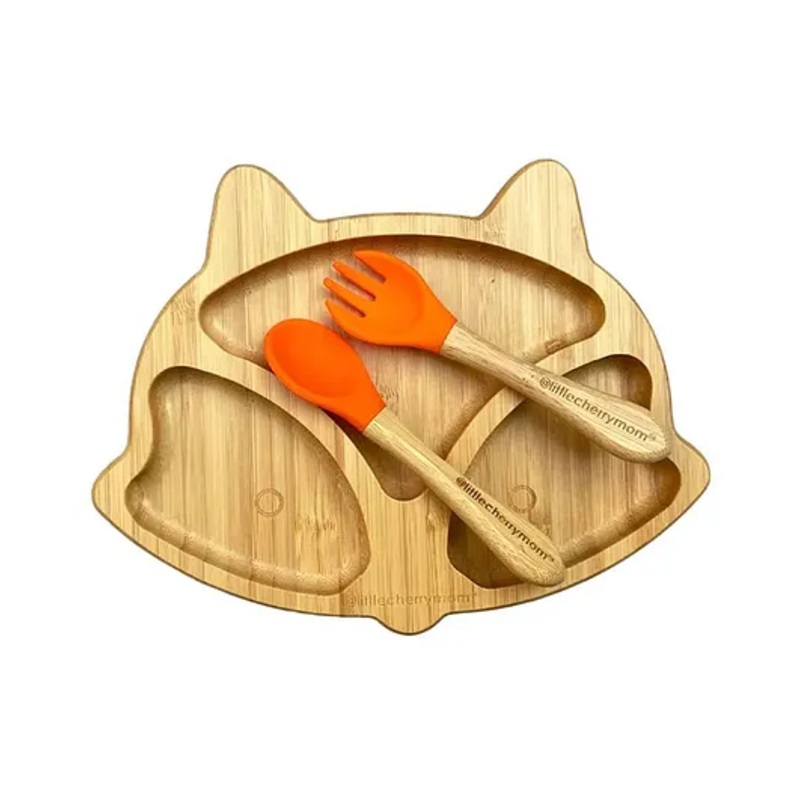 Introducing the FOX BAMBOO SUCTIONPLATE (with fork and spoon) by Littlecherrymom, a top choice forparents! This plate is made from premium-quality, food-grade bamboo fiber, witha spoon and fork crafted from food-grade silicone. It is PVC and lead-free, non-toxic,plastic-free, reusable, and antiallergic, ensuring safety for kids. No dyes areused in its making, making it a natural and healthy option. The plate featuresa suction base with an airtight mechanism that firmly attaches to highchairs ortables, preventing food spills. Easy to use and safe for kids, it’s the perfectgift for babies above 6 months of age. Choose Littlecherrymom’s FOX BAMBOOSUCTION PLATE (with fork and spoon) for a safe, practical, and delightfulmealtime experience!