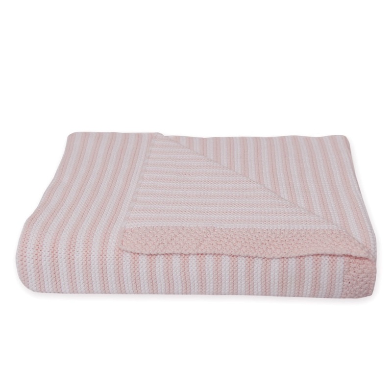 Living Textiles Knitted Stripe Blanket – Blush/White