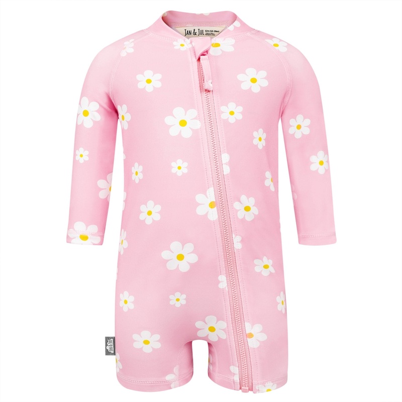 Long Sleeve UV Jumpsuit – Pink Daisy 6-12m