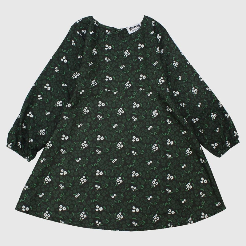 Long-Sleeved Green Flowers Dress