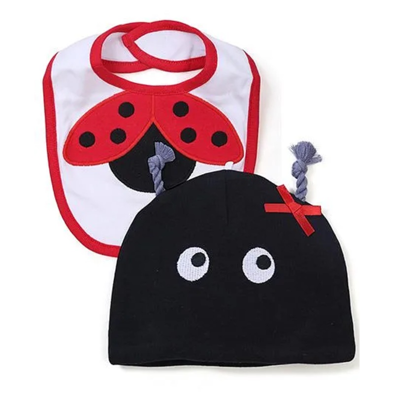 OCAL33215268513Lovespun Ladybug Print Bib with Hat – Red & Black