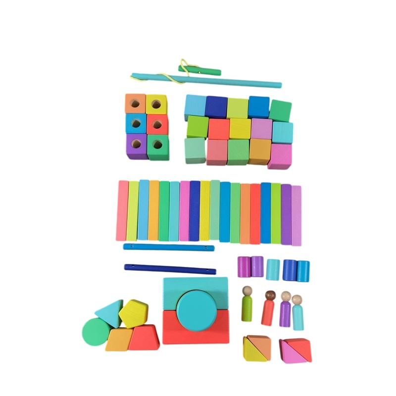 Condition: Gently Used What an incredible collection of high quality wooden blocks for your little one to explore with their creative mind. This set includes 70 pieces for your child to play and develop a variety of skills. Would you rather pay full flash