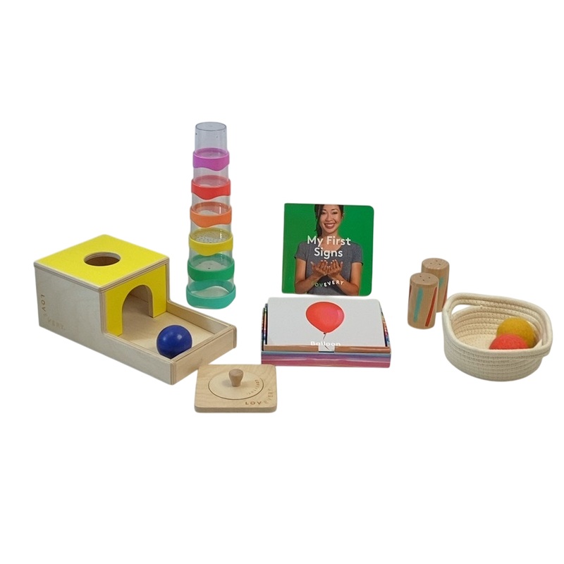 Condition: Barely Used This play kit is designed for ages 7-8 months to strike your babies curiosity! This kit offers a variety of high quality toys that will make simple noises, stack, introduce new textures and so much more.
