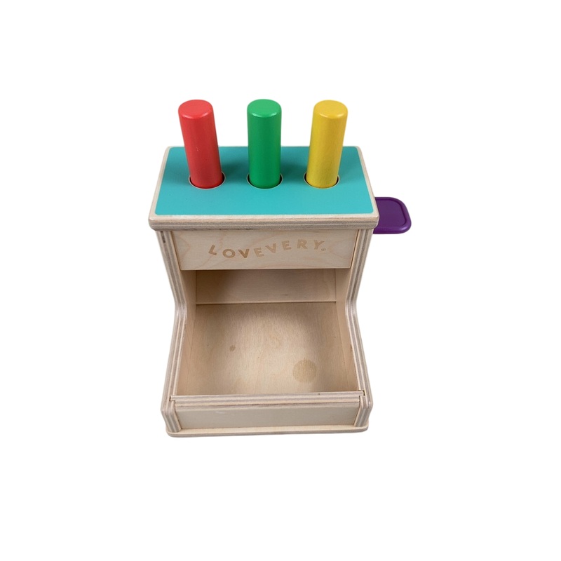 Condition: Barely Used This peg drop box promotes your little one's fine motor skills and problem solving skills as they stack the pegs into the hole then watch them drop!
