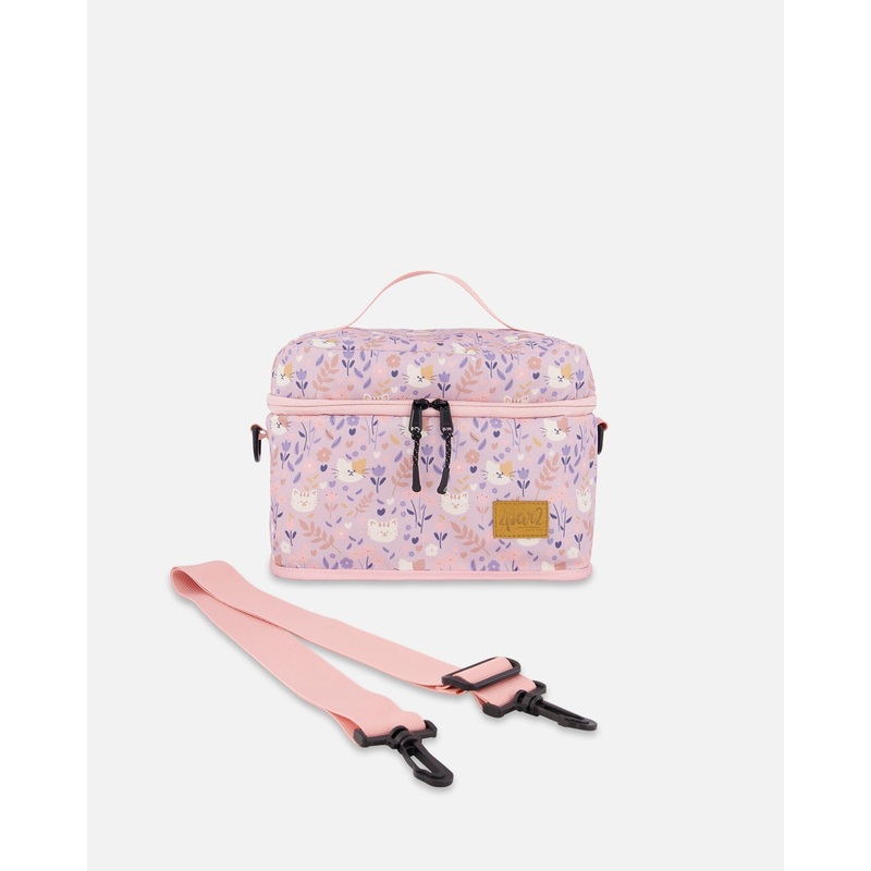 Carry healthy meals and yummy snacks in style with this eco-friendly lilac cat print lunch bag. In fabric made from recycled plastic bottles, this lunch box is perfectly sized to hold all types of food containers, and the main compartment is insulated to k
