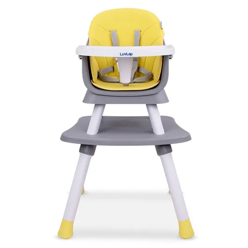 LuvLap Multifunction 6-in-1 Baby High Chair, Booster Chair, Study Desk, Game Table & Stool, Suitable for 6-36 Months, 5-Point Harness, Grey & Yellow