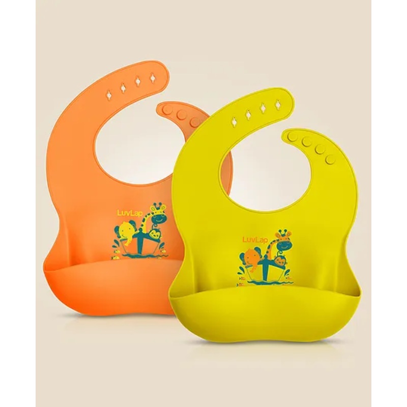 LuvLap Silicone Baby Bibs, Waterproof & Easy to Clean Feeding Bibs for Babies and Toddlers, Pack of 2 Orange & Yellow