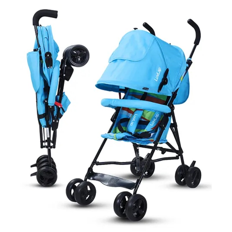 LuvLap Tutti Fruti Baby Stroller for 636 Months, Travel-Friendly with 5-Point Safety Harness, Reclining Seat, Extendable Canopy for Sun Protection, Lightweight and Easy to Fold Light Blue