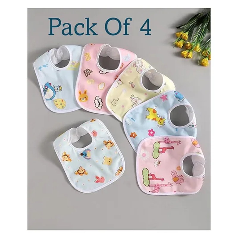 Luvlittle Feeding Bibs With Snap Button Closure Pack of 4 – Multicolour