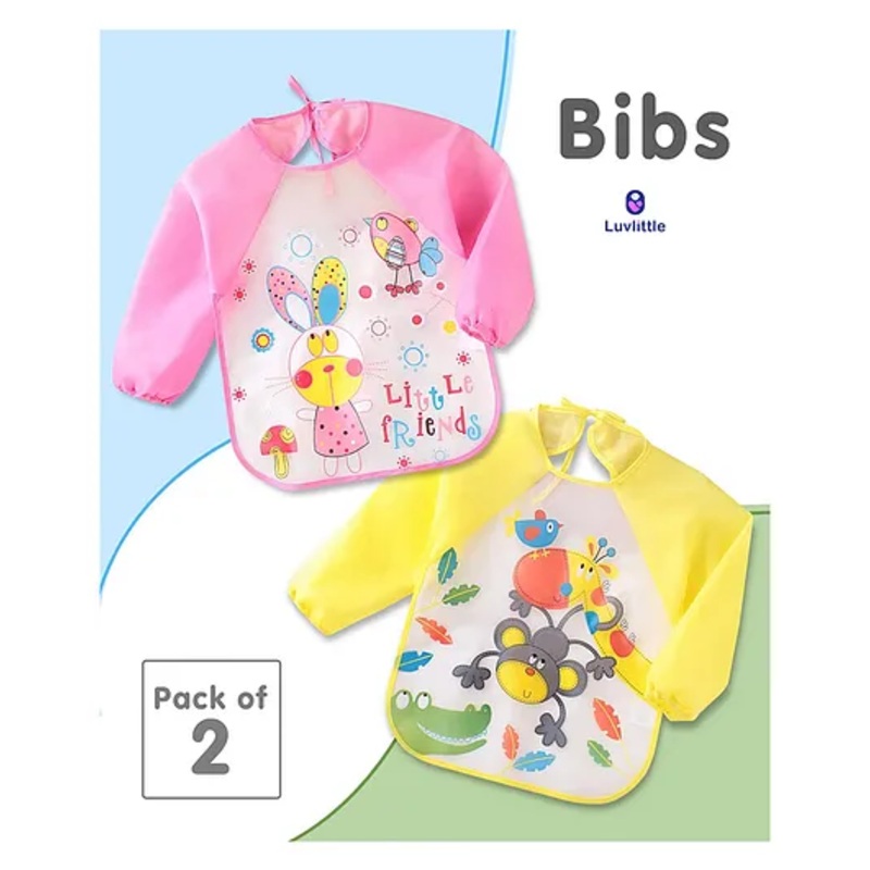 Luvlittle Full Sleeves Washable PVC Waterproof Bibs Pack Of 2 – Yellow Pink (Print May Vary)