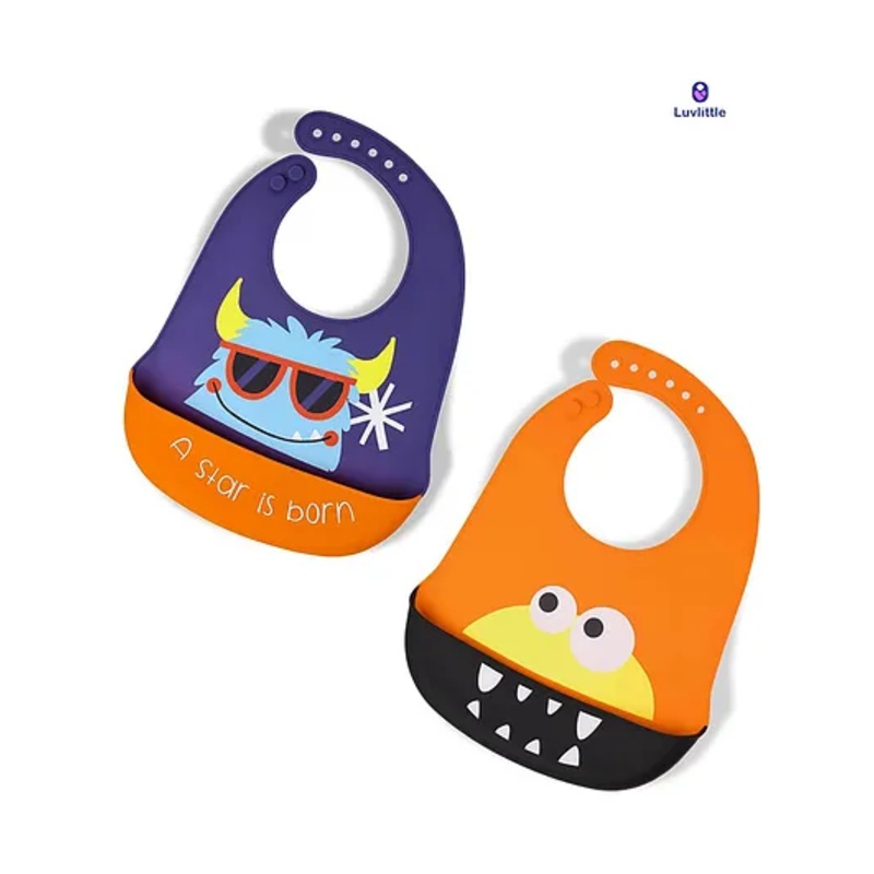 Luvlittle Silicone Waterproof Feeding Bibs With Adjustable Strap Pack of 2 – NavyBlue & Orange (Print May Vary)