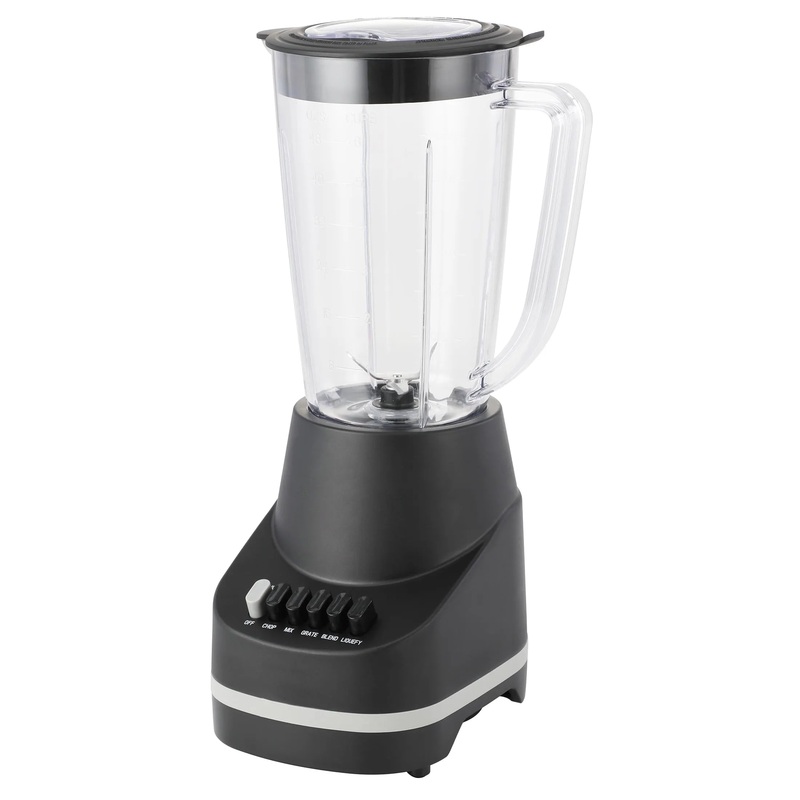 This Mainstays 6-Speed Blender with upgraded motor can blend smoothies, frozen drinks, salsa, and more. This product includes four pieces: (1) a 500W motor base with matte finish, cord, and cord storage pegs, (2) a 48oz plastic blending jar that is DISHWAS