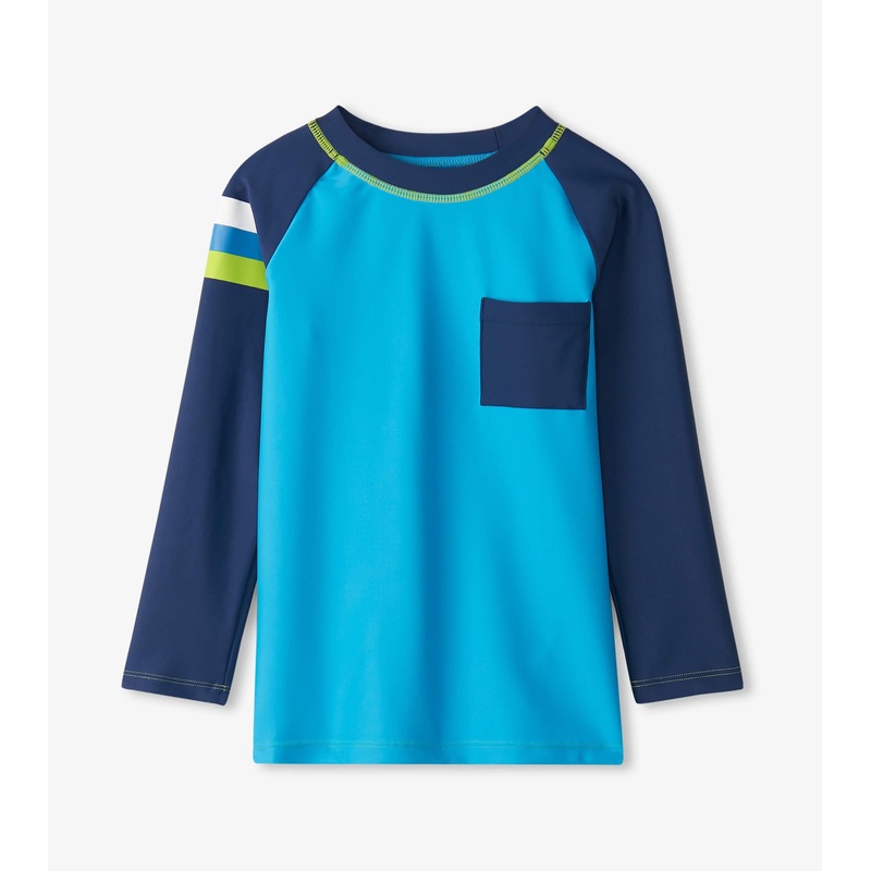 Dive into the deep blue with this Malibu Blue Long Sleeve Rashguard. The nylon and spandex material ensures a snug and safe fit while protecting your little swimmer from the sun! It's the perfect way to ensure beach day is a splash!Chemical-free UPF 50+ su