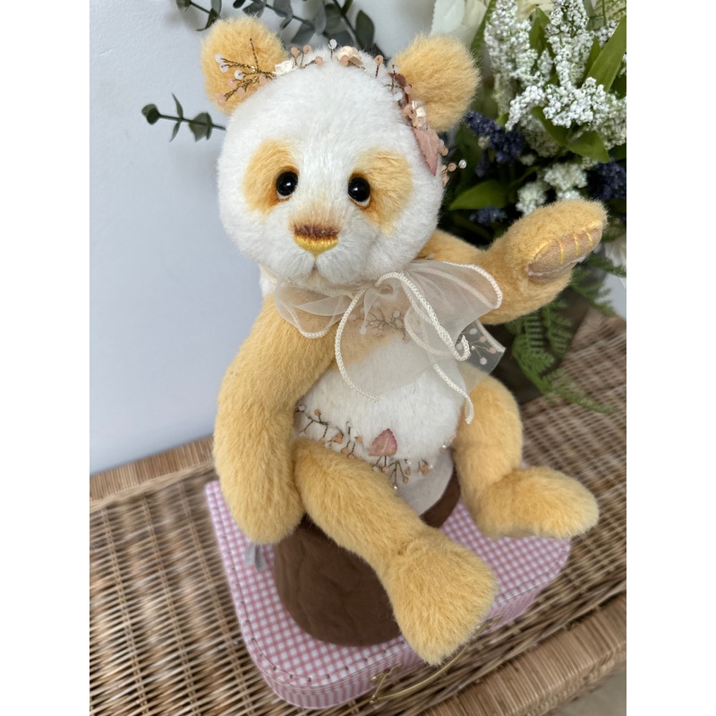 Marigold 30cm Alpaca Collectable Charlie Bears Panda Bear.A Numbered Limited Edition of only 300 pieces Worldwide.An adorable little panda with a organza bow and beautiful floral garland wrapped around her body and head.Designer: Isabelle Lee / Co- Designe