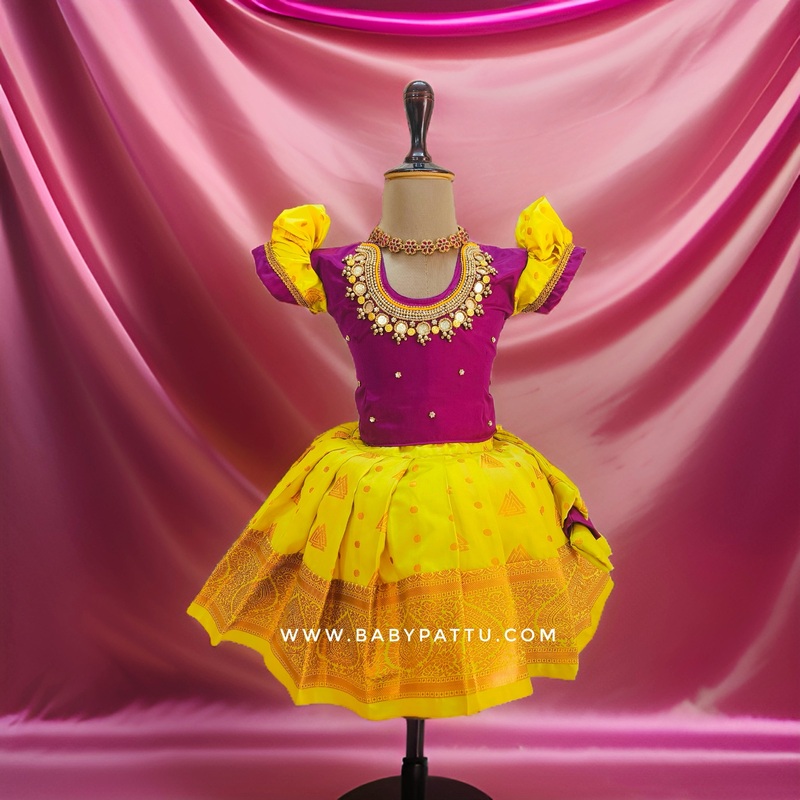 Maroon and Yellowish light Fenugreek Green color Pattu Pavada