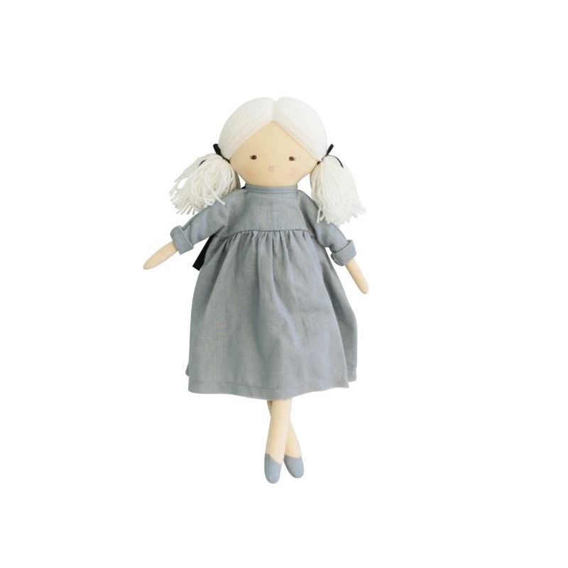 Matilda Doll is a sweetie, dressed in her simple yoked cotton dress will rolled up sleeves. Her hair is neatly tied in pigtails.Material - All new materials, cotton, ribbon, wool, synthetic fibre fillSize - height 45cm, width across hips 12cmColour - multi