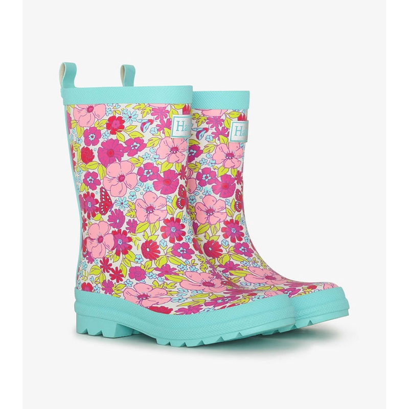The Girls Groovy Flowers Matte Rain Boots are a rainy-day essential! Made from durable rubber, these boots feature cheerful floral patterns and a matte finish for a stylish look. Designed to keep little feet dry and comfortable, theyre perfect for puddle-j