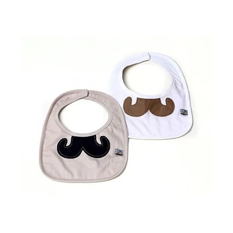 Mi Dulce An’ya Organic Cotton Bibs Moustache Desiggn Set of 2 – Beige White