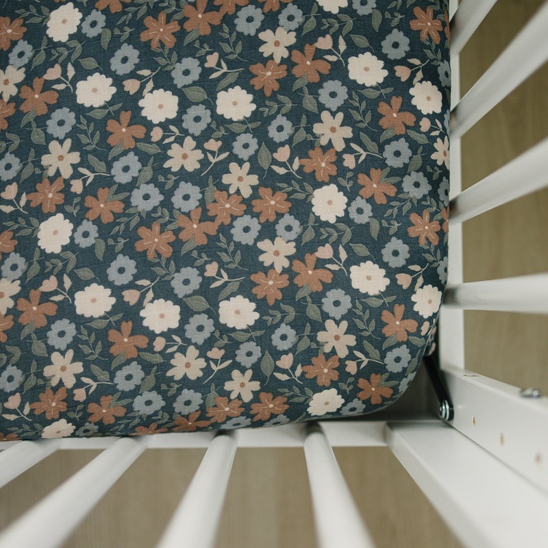 Midnight Floral Muslin Crib Sheet