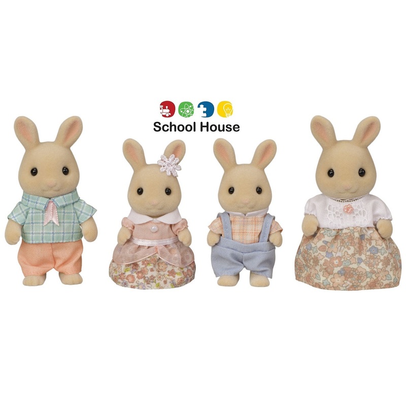 Milk Rabbit FamilyIntroducing the Milk Rabbit father Alex, mother Kate, and their children Rebecca and Oliver.Set featuring the Milk Rabbit family in lively pink and blue outfits.The fabric clothing can be removed to change their outfits.Includes Milk Rabb