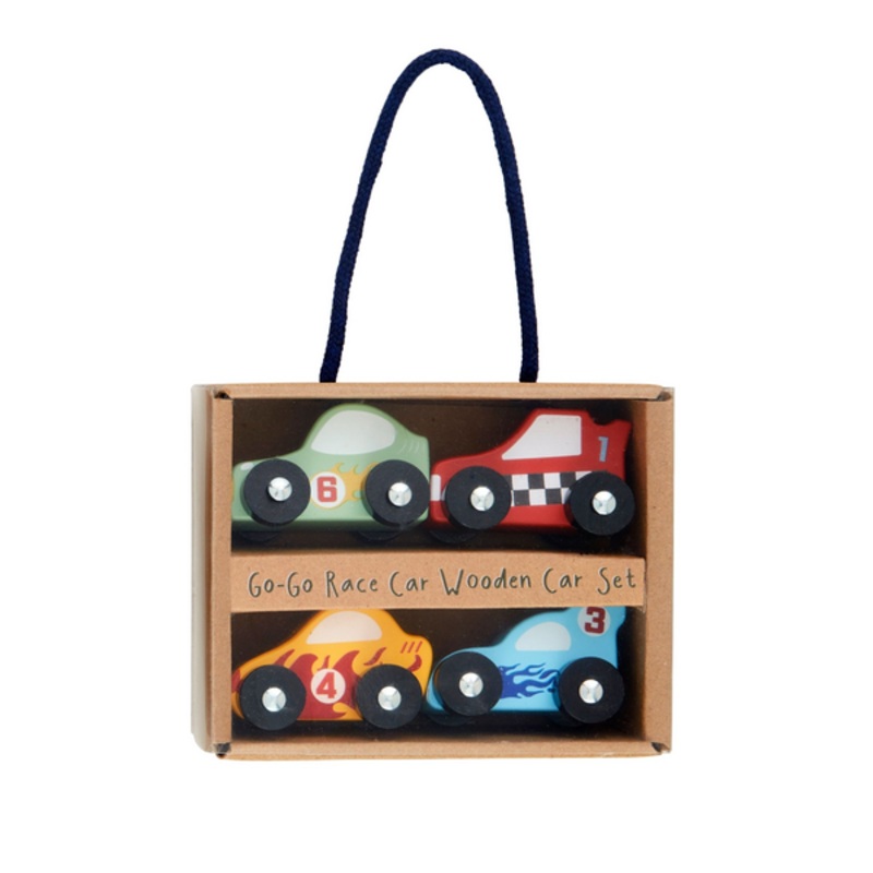 Mini Race Car Set. This delightful set features four charming wooden mini vehicles, each crafted with care from high-quality pine wood. Perfectly sized for little hands, these vibrant race cars are designed to inspire imaginative play and develop fine moto