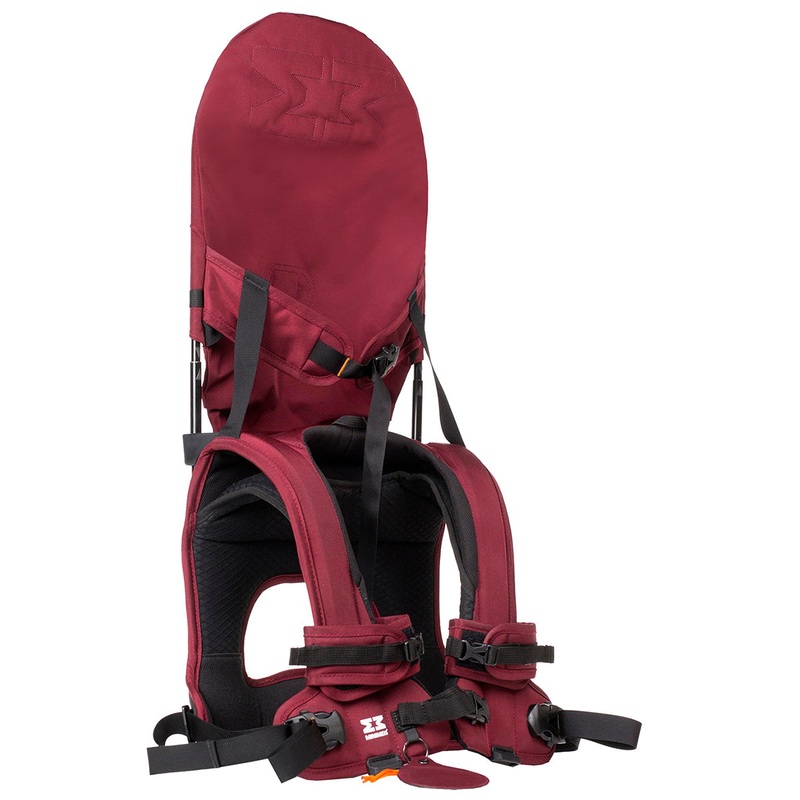 While discovering the world, your child sits safely on your shoulders secured by a waist belt and leg straps. A harness with shoulder straps is included to give extra upper body support for the smallest kids (6-10 months). An extendable padded seat provides maximum comfort for the child. The supportive backrest is designed to help the child sit up straight while sitting in the carrier on your shoulders.