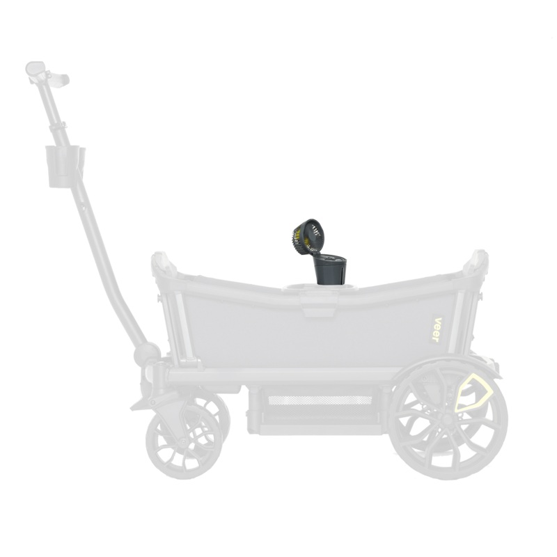 The Misting Fan can be used in the Cruiser Tray Cup Holder for passengers and is designed specifically to keep little fingers safe. It can also be used in the handlebar cup holder to keep mom or dad cool in push mode. The Misting Fan has 2 modes of cooling