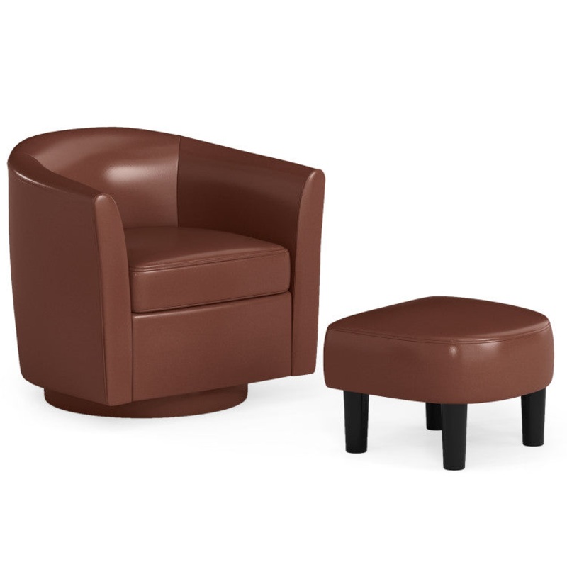 Modern Club Swivel Accent Chair With Ottoman Footrest Curved Backrest-Brown