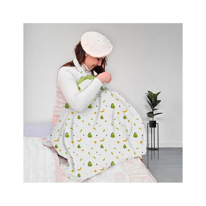 Moms Home Organic Cotton Muslin Nursing Cover for Breastfeeding Feeding Apron White & Green Avocado