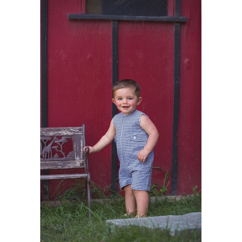 Dress your little gentleman in our Monogram Check Navy Long Romper and let him showcase his style with confidence and charm. It’s the perfect choice for both playtime adventures and special occasions.