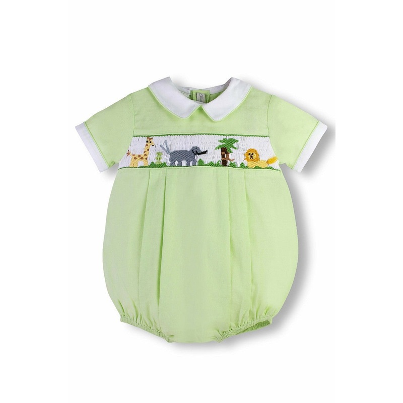 Carriage Boutique Smocked Animals Baby Boy Bubble Romper is made with soft and premium quality fabric and features smocked animals that are sure to make your little one smile. The collar is also a perfect finishing touch for this unique baby gift.This bubb