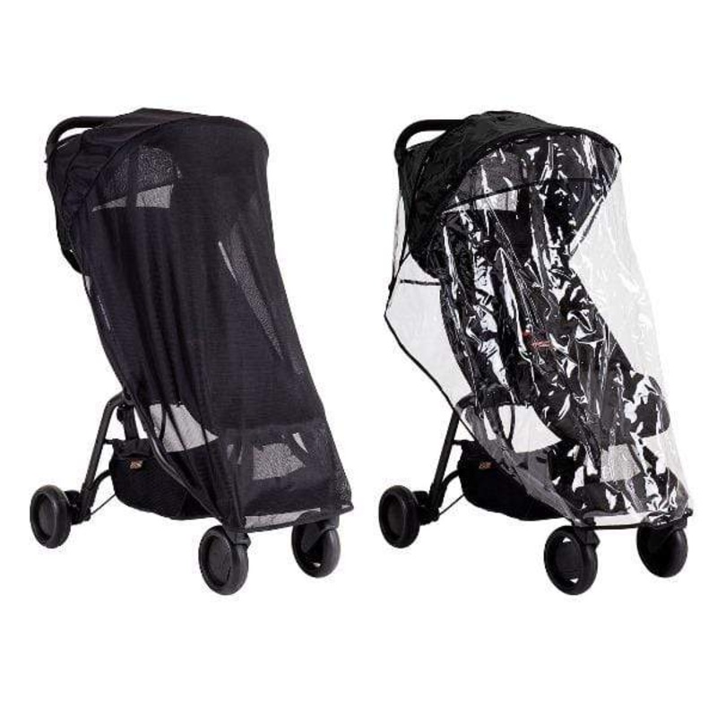 Includes a sun cover and a rain cover for your Mountain Buggy Nano also compatible with the Mountain Buggy Nano V3