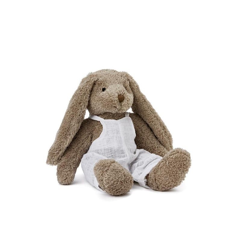 Mr Honey Bunny is made from the softest fabric, features big feet, floppy ears and the cutest white cotton overalls.Material - cotton polyester blendSize - height 40cm, width across hips 14cmColour - brown, whiteBrand - Nana HuchyAge - suitable for childre