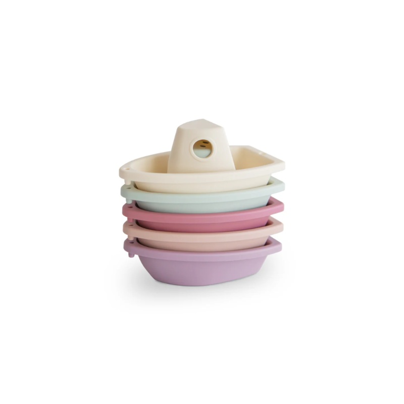 What's Included: 1x set of 5 Bath BoatsSet sail with our stackable bath boats that encourage independent play for children of all ages. Packaged as a set of five, these plastic boats link together to create a floating train of toys. Made in Denmark, these