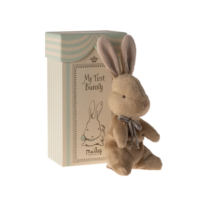 My First Bunny is perfectly made for small hands. It is made in a soft plush quality and has a colored ribbon around the neck. It is packed in a beautiful gift box where you can add the birth information inside. This is the perfect baby shower gift!