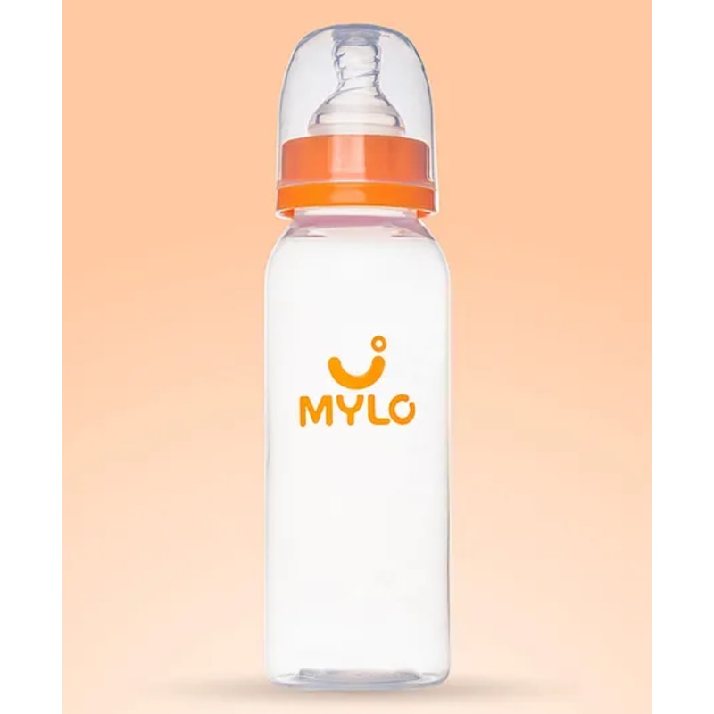 MYLO Feels Natural Baby Feeding Bottle, PP, BPA Free with anti-colic nipple Slim Neck – 250 ml (Zesty Orange)