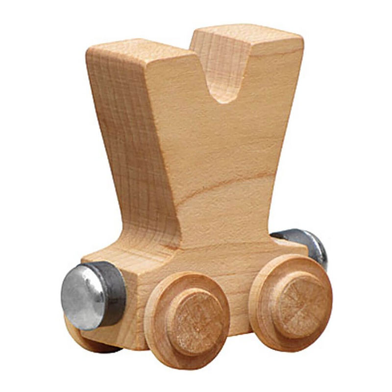 NameTrains Letter Car V is crafted from locally sourced and sustainably harvested hard maple. Magnets allow you to attach cars to form names and words.Age: 3 years+Non-toxic finish.Dimension: 2.4" x 1.3" x 2.5"Warning: Choking Hazard: Toy contains small pa