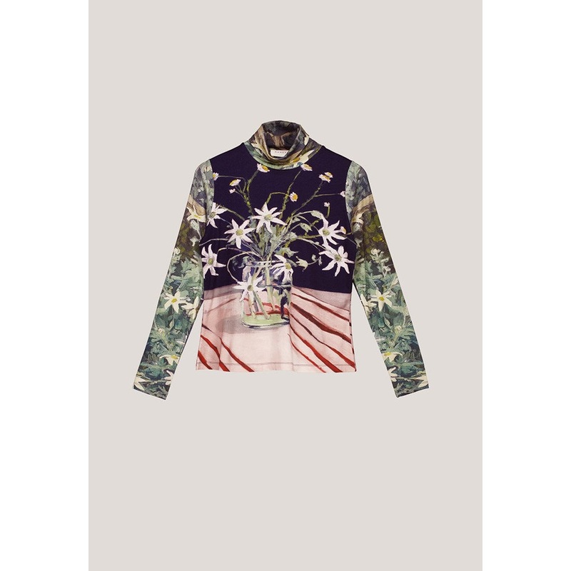 A Nancybird classic in soft organic cotton this skivvy is the perfect layering piece. Featuring the artwork of collaborating artist Louise Frith, our in-house designed Floratone artwork and the vintage illustrations of Lily of the Valley.DETAILSLong sleeve